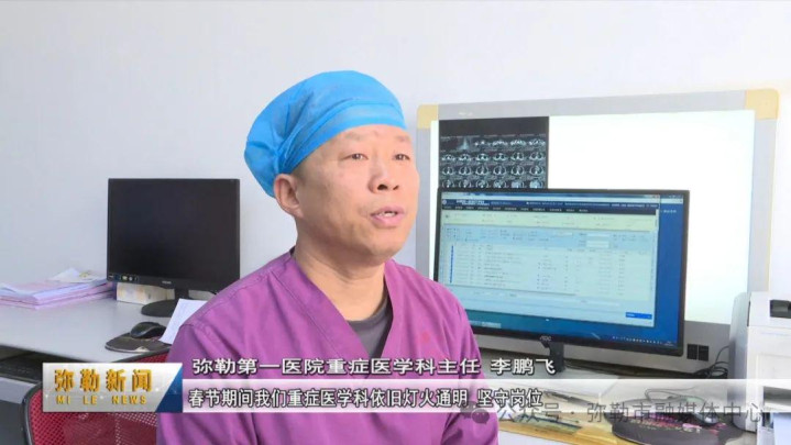 [弥勒第一医院重症医学科主任李鹏飞]:春节期间,我们重症医学科依旧灯火通明,坚守岗位,强化各种护理照顾,随时做好各种急危重病人的抢救治疗,祝全市人民蛇年大吉。